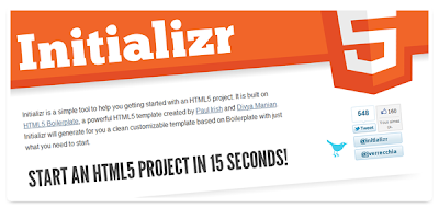 InitializrはPaul IrishとDivya Manianによって作られた、HTML Boierplateをベースしたwebプロジェクトを素早く開始するための素晴らしいツールです。これは、あなたが必要とするだけの機能をもったクリーンなテンプレートを素早く作る手助けとなります。これの作者はJonathan Verrecchiaです。